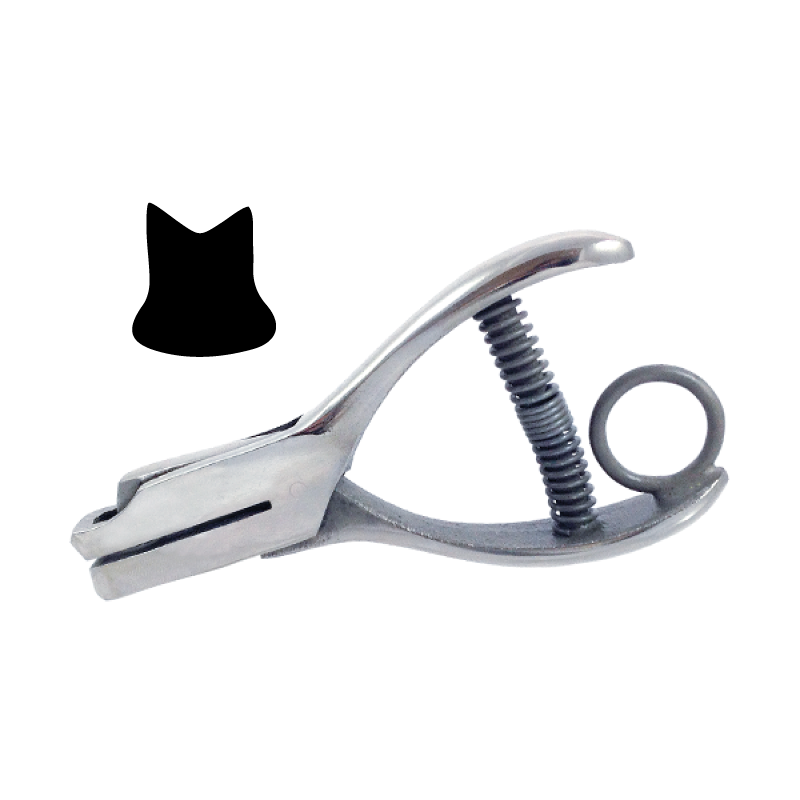 This Cat or Kitten shaped loyalty punch has a unique mark for branding. It is also used for pet stores and veterinarians. It is 3/16" in size, heavy duty and will go through up to 11 sheets of 20 lb. copy paper. It can be used for card stock, film and thin plastic up to 24 MIL*. Made in the USA, these punches are not available in stores. With an open front top there is space for punching visibility. See Video: