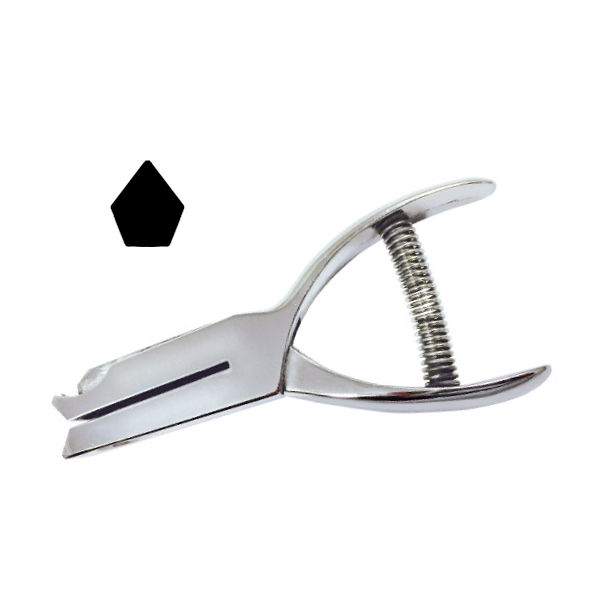 This pentagon shaped loyalty punch has a unique mark for branding. It is 1/4" in size, heavy duty and will go through up to 11 sheets of 20 lb. copy paper. It can be used for card stock, film and thin plastic up to 24 MIL*.