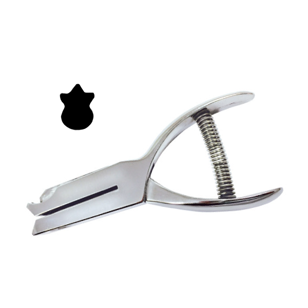 This shield shaped loyalty punch has a unique mark for branding.. It is 1/4" in size, heavy duty and will go through up to 11 sheets of 20 lb. copy paper. It can be used for card stock, film and thin plastic up to 24 MIL*. See Video: